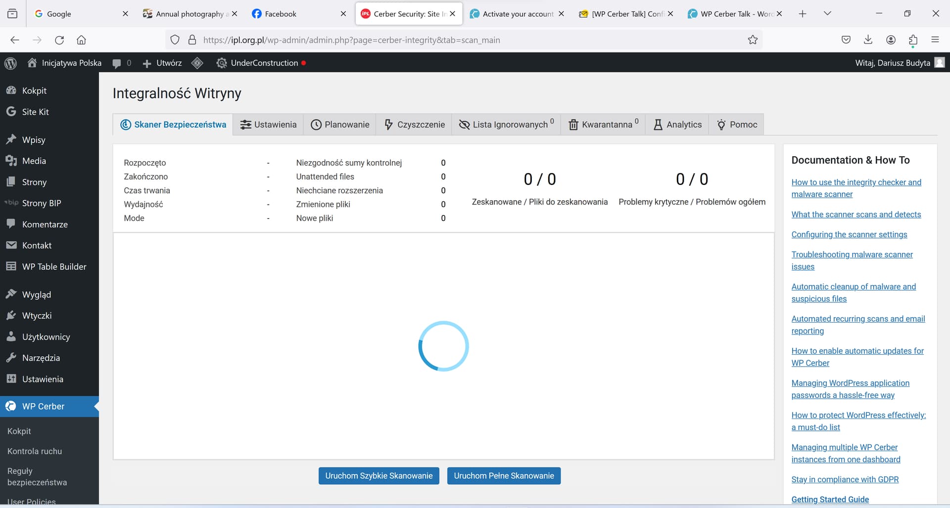Hello, The integrity of the website cannot be verified. It is not possible to perform a site scan: neither short nor long. I have had the program for at least a year and only now there is a problem with the scanner.